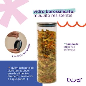"Oii! Tud bem? Vem saber mais sobre o Kit de 5 potes de vidro com tampa de inox herméticos redondos da Tud!