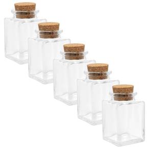 Kit 5 Potes de Vidro Quadrado com Tampa de Rolha 90ml Lyor