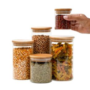 "Oii! Tüd bem? Vem saber mais sobre o kit de 5 potes de vidro com tampa de bambu herméticos de 200ml, 400ml, 600ml, 800ml e 1,1L da Tüd!