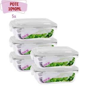 Kit 5 Potes Hermetico Vidro Transparente 1040ml Marmitas 4 Travas - Pote hermético de vidro