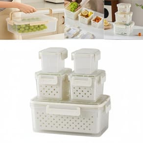 Diferencial: cestos internos/escorredores que permitem drenar líquidos e garantir circulação de ar dentro do recipiente.