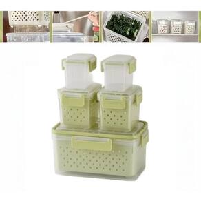 Kit 5 Potes Hermeticos Organizador Geladeira Escorredor Interno Marmita Fitness Plastico Tampa Trava Legumes Frutas Verd