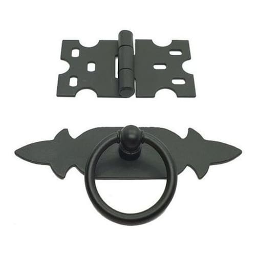 Kit 5 Puxadores Chapa Rústica + 9 Dobradiças Mexicana Preto Puxador com 10 cm x 3,5 cm Dobradiça com 3,5 na largura x 4 cm na altura. Cor: Preto Acompanha parafuso. Ean: 6012502949903