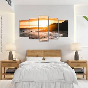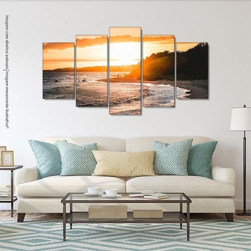 Kit 5 Quadros Decorativos Sala Quarto Praia Entardecer