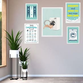 Kit 5 quadros divertidos para lavanderia - com vidro Moldura: madeira branca Informações do produto tire todas as suas dúvidas no descritivo abaixo: decoração para quarto, sala, cozinha, escritório, área gourmet e muito mais. Chega de paredes vazias medidas - kit composto por 5 quadros, sendo 2 quadros com medida 18x24cm, 2 quadros com 24x33cm e 1 quadro com medida 33x45cm. Material do papel - papel fotográfico brilhante de altíssima resolução acabamento - todos os quadros são acompanhados de vidro para proteção da imagem. - moldura em madeira maciça na cor preta ou branca conforme produto escolhido e pendurador . - os quadros são embalados de forma segura com plástico bolha com camada dupla de acordo com o tamanho dos quadros. - de 3 meses. Meu quadro chegou. Como posso fixá-lo Você precisa apenas de um martelo e um prego, pois os quadros já vão acompanhados de penduradores. Esta é a forma mais indicada. Como posso limpar meu quadro A limpeza é feita como um móvel comum da sua casa. Apenas um pano seco ou espanador são suficientes para tal Ean: 7898199649482