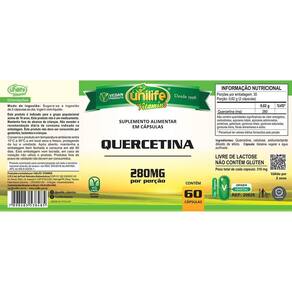Kit 5 quercetina unilife 60 cápsulas Quercetina é um flavonoide derivado de planta, isolado de cebolas, maçãs, uvas, vegetais folhosos e chás, principalmente do chá verde camélia sinensis . É geralmente conhecido por suas propriedades antioxidantes e anti- inflamatórias. Modo de ingestão: sugere-se a ingestão de 2 cápsulas ao dia. Ingerir com líquido. Ingredientes: quercetina, celulose, antiumectante dióxido de silício. Cápsula: gelatina vegetal e água purificada. Peso total de cada cápsula: 310mg. Livre de lactose. Não contém glúten. Produto vegano. Marca: Não Informado