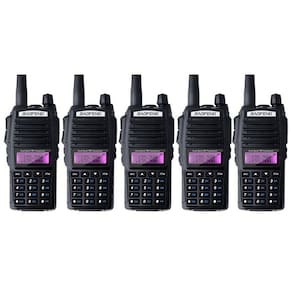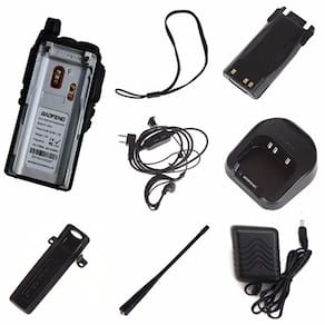 Rádio comunicador dual band com função rádio FM, programação por PC e manual, identificação de menu por voz (inglês e chinês), 50 subtons CTCSS e 104 subtons DCS, tempo máximo de transmissão - timeout timer (TOT), espaço de frequência (5,6.25,10,12.5,20,25kHz), função de economia de bateria, função VOX (ativa TX por voz), func bloqueio de TX em canal ocupado (BCL), aviso de bateria fraca, dual band, dual display e dual recepção, luz de teclado e visor automática, 3 modos de scan (time, carrier wave, search), PTTID (transmite DTMF quando aperta PTT, solta PTT ou durante TX), possibilidade de operação em repetidora VHF, UHF e crossband, seleção de opção de menu digitando número, U/V cross band dual recepção, alarme de emergência, high & low power switchover, priory scanning function, wide/narrow band selection, ANI code edition, relay forwarding confirmed (1750 Hz), função redução de ruído, dimensão: 116x58x36mm, capacidade: 2800 mAhIndicador de carga da bateria