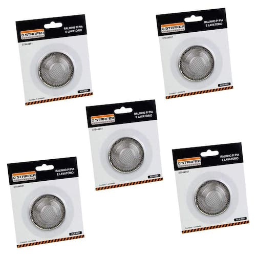 5 Ralos japoneses para pia e lavatório Inox, 5 cm de diâmetro.Ideal para uso em pias domésticas ou industriais.Fabricado em aço inox o produto não enferruja.Mantenha sua pia e tanque sempre limpos, o ralinho impede que restos de comida e outros resíduos caiam dentro do ralo e causem entupimentos ou mal cheiros.Informações técnicas do produto:Ref. 99910071Marca: StarferModelo: Ralo JaponêsMaterial: Aço Inox Quantidade: 5 ralos