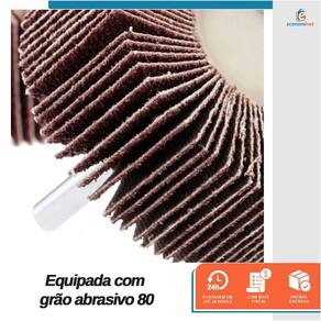 Principais características: Possui um diâmetro de lixa de 50mm e uma largura de 25mm Equipada com grão abrasivo 80 Fabricada com óxido de alumínio O pino de 1/4" (6mm) permite um encaixe fácil em furadeiras Com uma haste de 38mm Suporta uma rotação máxima de 13500RPM Saco plástico com testeira, contendo 5 unidades Ref.: 12019130 Marca: Starfer