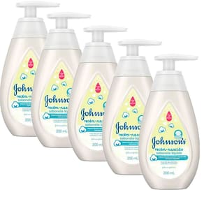 O Kit contém: 5 Sabonetes Líquido Johnson's Recém Nascido com 200ml cada.