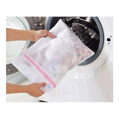Saco em poliéster para lavar roupas delicadas, ideal para peças íntimas entre outros. Durante a lavagem protege suas roupas do entrelaçamento dos fios, fiapos e da deformação do tecido na máquina de lavar. Suas roupas delicadas sempre protegidas!