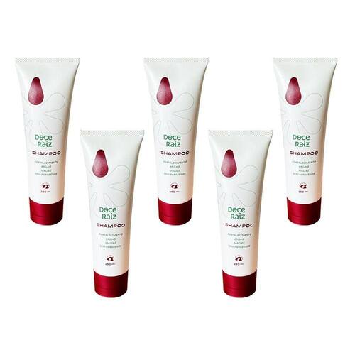 AS IMAGENS SÃO MERAMENTE ILUSTRATIVAS E PODEM SOFRER VARIAÇÕES DE COR E PEQUENOS DETALHES DE ACORDO COM O SEU MONITOR, ILUMINAÇÃO DO AMBIENTE E ATÉ MESMO A SUA PERCEPÇÃO VISUAL.Kit 5 Shampoo Doce Raiz Natural com Mais Brilho e Maciez 250ml