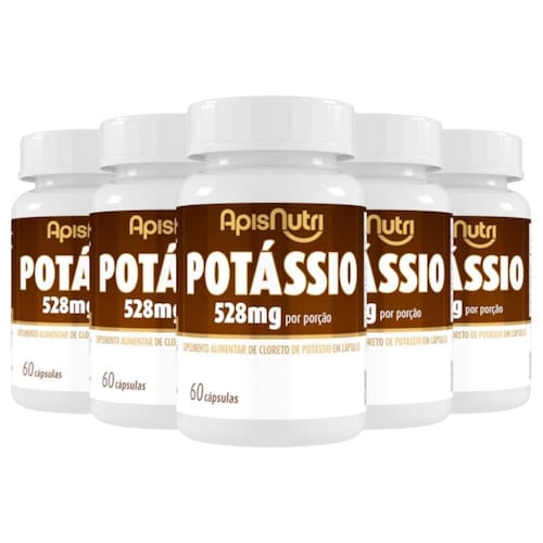 Kit 5 Potássio Apisnutri 528mg 60 Cápsulas Sobre o produto O potássio é um mineral essencial para diversas funções do organismo. Ele está presente naturalmente em muitos alimentos e também pode ser consumido na forma de suplemento. O potássio participa de processos importantes no corpo, como a manutenção do equilíbrio de fluidos, a contração muscular e a condução de impulsos nervosos. Além disso, ele é um dos principais eletrólitos do organismo, ajudando a manter a hidratação e o funcionamento adequado das células. Modo de usar Ingerir 2 cápsulas ao dia. Recomendação de uso: Pessoas com 19 dezenove anos ou acima. este produto não é um . não exceder a recomendação diária de consumo indicada na embalagem. mantenha fora do alcance de crianças. gestantes e lactantes, somente devem consumir este produto sob orientação de nutricionista ou médico. Manter a embalagem bem fechada e em local seco e fresco. Não expor a luz solar. Consumir em até 60 dias após aberto. Isento de registro no M.S. Conforme RDC 240/2018. Apresentação Classificação: Suplemento alimentar de Cloreto de Potássio em cápsulas Quantidade de cápsulas: 60 cápsulas de 650mg Peso Líquido: 39g Marca: Não Informado