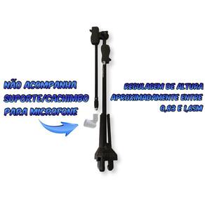 KIT 05 SUPORTE/PEDESTAL PARA MICROFONE PROFISSIONAL SOBRE O PRODUTO:Se é suporte profissional que você precisa, está no lugar certo.A IBOX empresa referência em suportes, nos traz o suporte/pedestal girafa universal para microfone.Projetado e desenvolvido com o maior padrão de qualidade, além de possuir um design inovador e dar outro visual a seu ambiente/estúdio/palco, ainda é leve, robusto e fácl de carregar.Suporte confeccionado em aço com pintura eletrostática, regulagem com gatilho para ajuste rápido de extensão e altura, tripé antiderrapante retrátil, proporcionando toda a tranquilidade em ter seus microfones seguros e livre de acidentes. CARACTERÍSTICAS DO PRODUTO: -MODELO: Suporte girafa para microfone;-COR: Preto;-MATERIAL: Tubos de aço com pintura eletrostática e peças de plástico injetado de alta resistência nas juntas e articulações;-MEDIDAS: 52cm ( haste da girafa ) 83 a 165cm ( altura );-TIPO DE ROSCA: 5/8" ( universal ). ITENS INCLUSOS: -05 Suporte/pedestal/tripé para microfone. OBSERVAÇÕES:-NÃO ACOMPANHA O CACHIMBO ( suporte para microfone );-Sistema de gatilho rápido, eliminando problemas com as manoplas de rosca;-Regulagem de altura de 81 a 165cm;-Garantia: 3 meses contra defeitos de fabricação. -Produto e à pronta entrega. Antes de finalizar a sua compra, tire todas as suas dúvidas no campo de perguntas, nossa equipe está aqui presente para sanar todas as suas dúvidas. Pedimos encarecidamente que após a compra, se ainda existir alguma dúvida ou houver algum problema com seu produto, NÃO ABRA UMA RECLAMAÇÃO, NOS CHAME NO CAMPO DE MENSAGENS que nos comprometemos e vamos com toda a certeza resolver todos os seus problemas. Muito obrigado. Obrigado pela preferência!