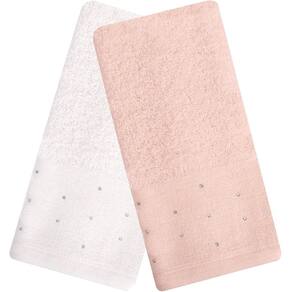 Kit 5 Toalha Lavabo Cristal Natalina 30x50cm Off White/Veludo Rosa -
