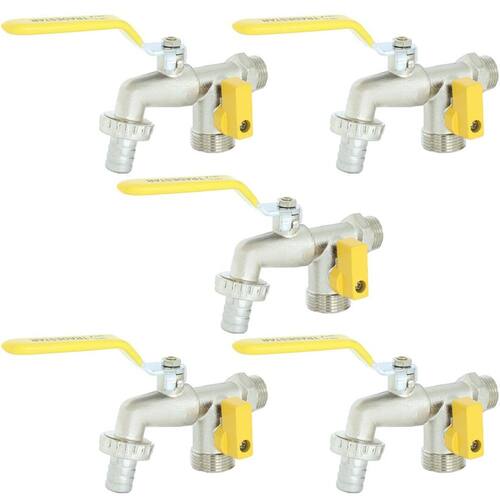 kit com 05 torneiras tradestar para tanque e máquina - duas saídas - 1/2 x 3/4
