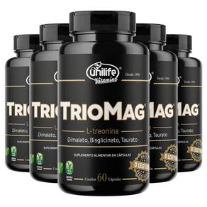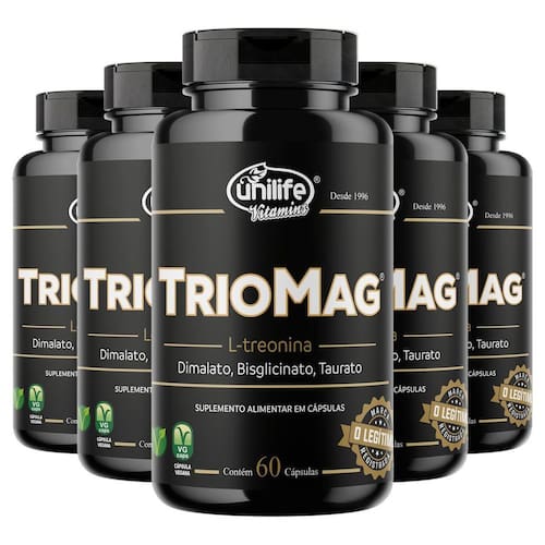Kit 5 Triomag Unilife 60 Cápsulas Suplemento composto por quatro tipos de magnésio e L-treonina. Triomag Unilife 60 Cápsulas é um suplemento alimentar desenvolvido com uma combinação de quatro tipos de magnésio e L-treonina, oferecendo uma fórmula inovadora para o dia a dia. Óxido de Magnésio: É um componente essencial que contribui para diversas funções no organismo, incluindo energia e bem-estar geral. L-treonina: Um aminoácido importante, desempenha um papel fundamental em atividades como a absorção de nutrientes e a manutenção do equilíbrio corporal. Dimagnésio Malato: Destaca-se por conter ácido málico, que está associado ao suporte energético. Magnésio Bisglicinato: É conhecido por suas propriedades relacionadas ao suporte do sistema nervoso e ao desempenho mental. Taurato de Magnésio: Combina magnésio e taurina, proporcionando benefícios complementares. Informações adicionais: Livre de lactose Não contém glúten Registro: Produto autorizado para comercialização em todo o território nacional através do anexo I da RDC 240/2018 da ANVISA. AFE do MS 6.02234-1. Marca: Não Informado