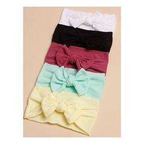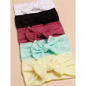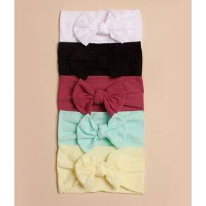 Kit 5 Turbantes Feminino Infantil Lacinho Macio Slim Bebê - Único - Preto