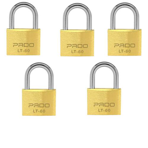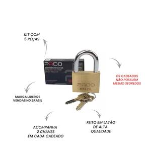 O kit contém 5 cadeados em latão 60mm Pado Acompanha: 2 chaves em latão