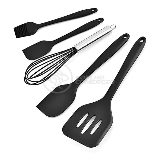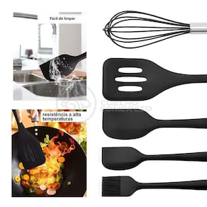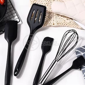 Dê um toque de modernidade e eficiência à sua cozinha com o nosso Kit de Utensílios de Cozinha em Silicone. Cada conjunto contém 5 utensílios essenciais, projetados para simplificar todas as suas tarefas culinárias.