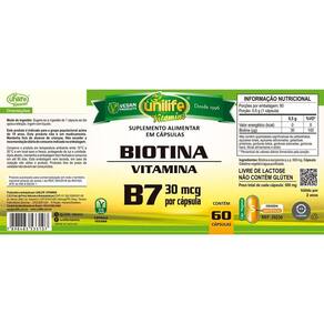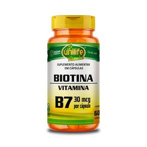 O que é a Vitamina B7 Biotina da Unilife A vitamina B7 Biotina da Unilife faz parte do complexo de Vitamina B, todas vitaminas do complexo B não são produzidas pelo corpo, ou seja precisamos adquirir ela por dietas, entretanto a Vitamina B7 está presente na maioria dos alimentos, mas ela é umas das mais ausentes em todos os organismo, isso acontece devido ela ser muito frágil, e no seu processamento pode ser destruída com muita facilidade e assim perdemos todos seus nutrientes, o que nos resta é suplementar a Vitamina B7 Biotina para obter a quantidade exata sem nenhuma preocupação, pois a carência de B7 pode afetar diretamente o sistema nervoso, coração, e a função digestiva. Como utilizar a vitamina Biotina B7 da Unilife A fabricante Unilife recomenda a utilização de 1 cápsula diária após a principal refeição do dia, deve-se consumir juntamente com líquidos para melhor absorção pelo organismo. A equipe da Edin adverte que qualquer alteração dessa dosagem deve ser feito com um acompanhamento nutricional adequado. Marca: Não Informado