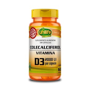 A Vitamina D3 2000 UI Colecalciferol Unilife 60 Cápsulas é um suplemento alimentar desenvolvido com ingredientes cuidadosamente selecionados para garantir qualidade e pureza. Cada cápsula contém colecalciferol Vitamina D3 , proporcionando uma opção prática para complementar a alimentação diária. A cápsula é composta por gelatina vegetariana e água, tornando o produto adequado para diferentes perfis de consumo. Ingredientes Colecalciferol Vitamina D3 , amido modificado, gelatina vegetariana e água Informações adicionais Não contém glúten Não contém lactose Produto vegano Modo de uso Sugere-se a ingestão de 1 cápsula ao dia, preferencialmente após a refeição, ingerida com líquido. Informação nutricional Cada porção de 0,5 g 1 cápsula contém 50 mcg 2000 UI de Vitamina D3, correspondendo a 100% da necessidade diária recomendada. Armazenamento Manter em local seco e fresco, ao abrigo da luz e umidade. Após aberto, consumir dentro do prazo de validade indicado na embalagem. Marca: Não Informado
