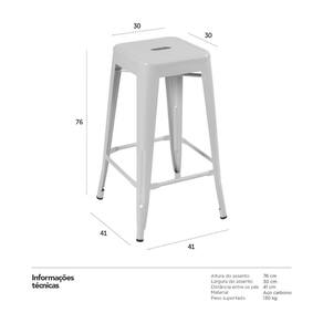 Banqueta alta modelo Tolix. Material: Aço carbono - Altura: 76 cm - Largura do assento: 30 cm - Distância entre os pés: 41 cm - Peso suportado: 130 kg - Garantia: 3 meses.