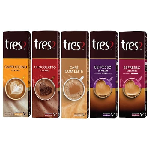 Kit 50 cápsula três corações café expresso e bebida cremosa cápsulas três corações