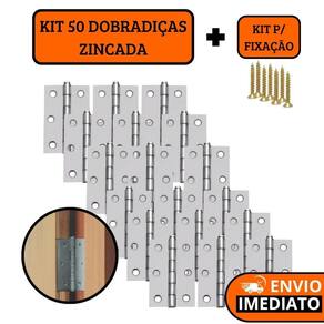 Kit 50 dobradiças zincada para porta de madeira 6,4cm + parafusos para fixação