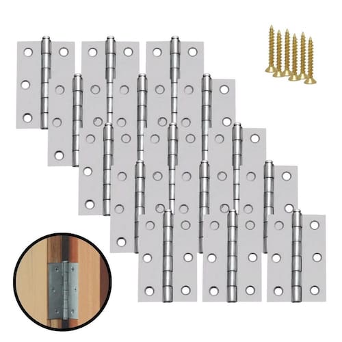 Kit 50 dobradiças zincada para porta de madeira 6,4cm + parafusos para fixação