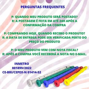 Loja oficial da europio Somos uma das lojas com mais variedades de brinquedos no país Aqui em nossa loja você encontra diversos brinquedos diferentes, de alta qualidade, trazendo segurança e qualidade em todos os nossos produtos Prezamos pela qualidade de nossos produtos, por isso todos os produtos são testados e conferidos antes do envio Todas nossas fotos e vídeos são reais, tiradas por nossa equipe buscando passar maior transparência para nossos clientes. = = = = = = = = = = = = = = = = = = = = = = descrição = = = = = = = = = = = = = = = = = = = = = = = = = = Uma flauta doce de brinquedo de plástico tem a função de proporcionar diversão e entretenimento para crianças. Ela permite que as crianças experimentem tocar músicas simples, desenvolvendo a coordenação motora fina, a percepção musical e a criatividade. Além disso, a flauta doce de brinquedo pode estimular o interesse pela música e o aprendizado de conceitos básicos de melodia e ritmo, enquanto proporciona momentos de alegria e expressão artística durante a brincadeira. Vale ressaltar que, devido ao material ser plástico, ela não oferece o mesmo som ou qualidade que uma flauta doce profissional, mas ainda é uma ótima opção para introduzir as crianças ao mundo musical de forma lúdica e segura. Funções: - aprender musica - diversão - estimula a imaginação - com instruções atrás na embalagem O que você vai receber em sua casa conteúdo da embalagem - 50 flauta Medidas: Altura: 30 cm Largura: 2 cm Material: plástico Idade recomendada: Recomendável para crianças maiores de 3 anos. Inmetro : 001899/2022 Ce-bri/cepex-n 01414-52 P: quando meu produto será postado R: a postagem é feita em até um dia depois após a confirmação. P: comprando hoje, quando recebo o produto R: a data de entrega pode ser verificada perto do preço do produto. R: sim. = = = = = = = = = = = = = = = = = = = = = = = = = = = = = = = = = = = = = = = = = = = = = = = = = = = = = Caso tenha mais alguma dúvida faça sua pergunta para nós Marca: Não Informado Ean: 7893794430350