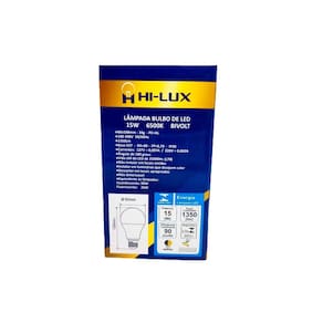 50 - LÂMPADAS LED BULBO 15W 6500KA linha de lâmpadas LED HILUX é indicada para retrofit de lâmpadas incandescentes ou fluorescentes, em diversos tipos de aplicações para ambientes internos.PROPRIEDADES¿ Lâmpadas certificadas pelo INMETRO.¿ Formato similar às lâmpadas incandescentes tradicionais.¿ Corpo em policarbonato branco e difusor em policarbonato branco leitoso.¿ Possui driver interno isolado.CARACTERÍSTICAS DE FUNCIONAMENTO¿ Temperatura ambiente: -5°C a 40°C.¿ Tensão de entrada: 100V a 240V.ESPECIFICAÇÕES TÉCNICAS¿ Base : E27¿ Tensão : Bivolt Automático 100V - 240V¿ Ângulo de abertura : 180 graus¿ Potência : 15W¿ Fluxo Luminoso : 1350 Lumens¿ Temperatura de cor : 6500K¿ Emissão de cor : Branca¿ Equivalência : Incandescente 75w / Fluorescente 20W¿ Dimensões : 108mm x 60mm