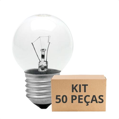 Kit 50 Lâmpadas Incandescente Bolinha Colorida 15w E27 Taschibra Clara 220V
