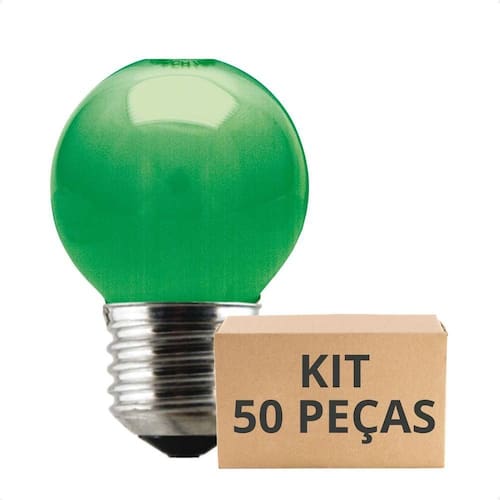 Kit 50 Lâmpadas Incandescente Bolinha Colorida 15w E27 Taschibra Verde 220V