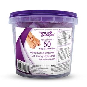 Kit 50 Pares Sapatilhas e 50 Pares Luvas com Creme Emoliente Contém 2 baldes: 01 - Kit 50 Pares de Sapatilhas com Creme Emoliente Arte Sedução01 - Kit 50 Pares de Luvas com Creme Emoliente Arte Sedução Pote econômico de lacre inviolável, são 50 pares de Sapatilhas e 50 pares de Luvas com creme hidratante e amolecedor de cutícula. A Arte Sedução traz pra você, os Kits Manicure e Pedicure com toda qualidade e confiança do mercado. Cada par de Botinha e Luva vem dentro de um sache emoliente de 18 gramas cada. Proporcionam frescor e resultados profissionais no cuidado com as mãos e pés.Nossos produtos são 100% descartáveis, evitando contaminações e doenças.Kits descartáveis dispensam o uso de água durante o procedimento. Composição: Aqua, Disodium EDTA, Cetearyl Alcohol, Ceteareth-20, Paraffinum Liquidum, Phenoxyethanol, Ethylparaben, Methylparaben, Propylparaben, Butylparaben, Aloe Barbadensis Leaf Extract, Parfum, Alpha-Isomethyl Ionone, Butylphenyl Methylpropional, Coumarin, Eugenol, Geraniol, Hexyl Cinnamal, Isopropyl Myristate, Hidrolyzed Keratin. Precauções: Uso externo, manter fora do alcance de crianças. Não utilizar sobre a pele irritada ou lesionada. Evitar contato com os olhos. Para uso durante a gravidez consulte um médico. Em caso de irritação suspender o uso. Conservar em local fresco afastado da incidência de forte calor e luz solar. Modo de usar: 1º - Retirar o esmalte.2º - Lixar as unhas.3º - Colocar as Botas ou as Luvas.4º - Massagear os pés ou as mãos e as pontas dos dedos espalhando o creme.5º - Deixar o creme agir.6º - Romper as pontas dos dedos da Bota ou da Luva7º - Retirar a cutícula.8º - Retirar a Bota ou a Luva.9º - Para ter melhor aderência retire o excesso de creme utilizando o palito descartável com algodão umedecido em acetona. Boa compras ;