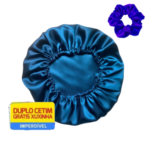 Kit 50 Toucas de Cetim Antifrizz Dupla Face Alto Brilho Ajustável + Xuxinha - Cor: Azul