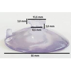 - Ventosa de 55mm 5,5cm PVC Silicone Fixação - Produzidas em plástico, silicone e PVC Cristal, garantem boa fixação em superfícies lisas e não porosas - Adequado para utilizar em display e entre o vidro e a base da mesa, evitando o deslocamento do vidro - Cor: Transparente incolor - Diâmetro: 55mm 5,5cm Marca: H Plásticos Ean: 7893413813663
