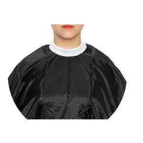 A gola higiênica é então dobrada sobre a capa. Remova a gola higiênica após finalizar o corte de cabelo.