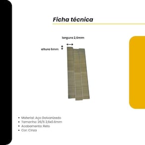Kit contendo 5 caixas com 10mil em cada Grampo Galvanizado 26/6 Futuro O Grampo Galvanizado 26/6 - Futuro é uma ótima opção para quem precisa de um grampo de qualidade e durável. O grampo é feito de aço galvanizado, o que o torna resistente à corrosão e ao desgaste. Validade: Indeterminada Marca: Futuro Dimensões cm : 4.00 x 3.00 x 11.00 A x L x P Organização e Durabilidade com Grampo Galvanizado 26/6 - Futuro Sua Solução de Escritório Perfeita Resistência para o Dia a Dia Feitos de aço galvanizado, esses grampos são extremamente resistentes, resistentes à corrosão e ao desgaste. Ideal para quem valoriza produtos de longa duração e quer garantir que seus documentos estejam sempre bem presos. Praticidade e Versatilidade As dimensões compactas Confiança e Segurança Com a marca Futuro, você tem a de adquirir um produto desenvolvido para atender às suas expectativas de qualidade e desempenho. Garanta o Seu Agora Não perca a oportunidade de otimizar seu ambiente de trabalho. Adquira os grampos galvanizados 26/6 e experimente a diferença de um produto confiável e eficiente na organização de seus documentos. Marca: Não Informado