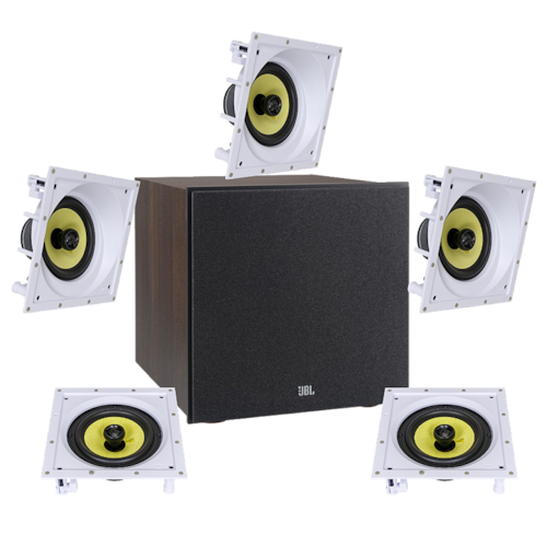 Kit composto de 3 cxs CI PLUS 6SA + 2 CI PLUS 6S + Subwoofer JBL 10¨Stage 200P 150W RMS - Pico 300W RMS cor Madeira