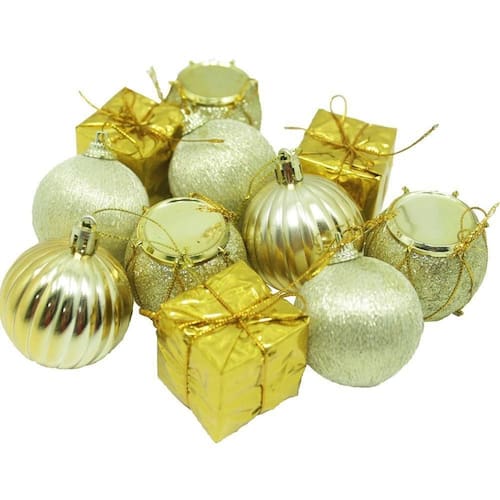 5 Kit Com 11 Pingentes Dourados 5cm Para Árvore De Natal;