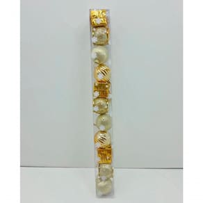 CORES: Dourado e Branco; MATERIAL: Plástico, Isopor e Glitter; MEDIDAS: Diâmetros 5cm 50mm; CONTEÚDO DA EMBALAGEM: