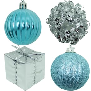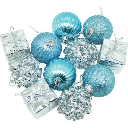 5 Kit Com 11 Pingentes Azul E Prata De 5cm Para Árvore De Natal;