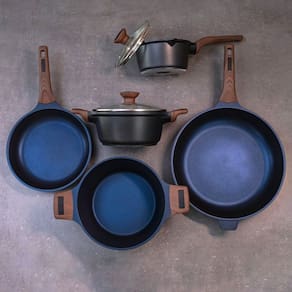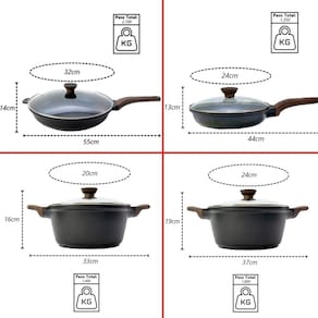 Kit 5pç Caçarolas Frigideiras Antiaderente Temperatti Nigro A panela antiaderente, também conhecida como teflon, é revestida com uma substância capaz de repelir certas substâncias. Por isso, a comida não gruda nela. É resistente a altas temperaturas e a arranhões. As caçarolas em alumínio antiaderente contam com uma camada que cobre o seu material e evita que o alimento grude em seu interior. Dessa forma, contribuem para uma culinária saudável, dispensando o uso excessivo de gordura ou óleos vegetais. Para quem gosta de um peixe ou filé de frango grelhado, ou não dispensa uma omelete delicioso, não pode deixar de ter uma em sua cozinha. Compatível com os demais fogões: Indução, Elétrico, Gás e Vitrocerâmico. Livre de PFOA. Manutenção e Dicas: 1. Evite grandes mudanças de temperatura. (Levar uma panela quente para a água fria pode fazer com que a panela deforme.) 2. Limpe suas panelas antiaderentes com esponjas que não causem riscos. 3. Use detergentes mais suaves para limpar suas panelas antiaderentes. 4. Não use metal na sua panela antiaderente. 5. Não é ideal para máquina lava louças. 6. Evite altas temperaturas de cozimento. 7. Não deixe a panela vazia no fogo. Especificações Técnicas:Alças e Cabos Revestidos com Soft Touch.Modelo: Temperatti.Fundo: 5mm.Linha: Nigro. Medidas Caçarola 20cm:Comprimento com a Alça: 33cm.Largura: 20cm.Peso: 1,400Kg.Altura: 16cm. Medidas Caçarola 24cm:Comprimento com a Alça: 37cm.Largura: 24cm.Peso: 1,800Kg.Altura: 19cm. Medidas Frigideira 24cm:Comprimento com o Cabo: 44cm.Largura: 24cm.Peso: 1,350Kg.Altura: 13cm. Medidas Frigideira 32cm:Comprimento com o Cabo: 55cm.Largura: 32cm.Peso: 2,100Kg.Altura: 14cm. Medidas Panela 16cm:Comprimento com o Cabo: 37cm.Peso: 0,900Kg.Largura: 16cm.Altura: 14cm. Itens Inclusos:01 Caçarola Antiaderente Cerâmico Temperatti Nigro AM TV 20cm.01 Caçarola Antiaderente Cerâmico Temperatti Nigro AM TV 24cm.01 Frigideira Antiaderente Cerâmico Temperatti Nigro CM TV 24cm.01 Frigideira Antiaderente Cerâmico Temperatti Nigro CM TV 32cm.01 Panela Antiaderente Cerâmico Temperatti Nigro CM TV 16cm. Código: 2146JAVProdutoLojaPlast.