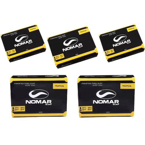 Parafina reconhecida mundialmente por sua qualidade, Utilizado pelos melhores surfistas do Mundo, possui uma fórmula de grande durabilidade e fácil aplicação. Aplicação: limpe a superfície removendo toda a parafina e aplique com movimentos circulares. 5 unidades 40g cada Fórmula água Tropical excelente para surfar na América Central e Nordeste do Brasil e também pode ser Utilizado como base, por ser uma parafina mais dura. Cor natural, sem corantes. Aroma Tutti Frutti. ATENÇÃO: Produto não alimentício. Marca: Não Informado