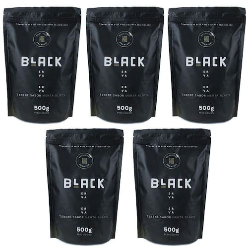 Kit 5x Erva Mate Tereré Black Erva 500g Sabor Menta Black Kit 5x Erva Mate Tereré Black Erva 500g Sabor Menta Black O Tereré possui efeito diurético, que colabora no processo de redução da gordura corporal. A bebida estimula o aumento o gasto energético dos consumidores, por proporcionar maior força muscular e, consequentemente, melhor desempenho nos treinos. Sabor marcante e refrescante é o que você vai encontrar. A erva menta black é composta por pura hortelã e eleva o seu nível de sabor. Pacote com 500g com sistema zip lock para maior conservação do produto. Modo de Preparo: - Coloque 3/4 de Black Erva na guampa, cuia ou copo. - Incline e acomode a Black Erva sobre um lado da guampa, cuia ou copo. Deixe a bomba no local adequado. - Tome com água gelada a gosto e saboreie sua Black Erva. Consumir com água gelada para melhor aproveito do sabor. ESPECIFICAÇÕES TÉCNICAS: - Marca: Black Erva - Ilexx paraguariensis (Erva Mate), Aroma Artificial de Extrato de Menta - Padronização Erva Mate Folha 35% mínimo, outras partes do ramo 65% máximo - Não contém glúten ITENS INCLUSOS: - 5x Erva Mate Tereré Black Erva 500g Sabor Menta Black