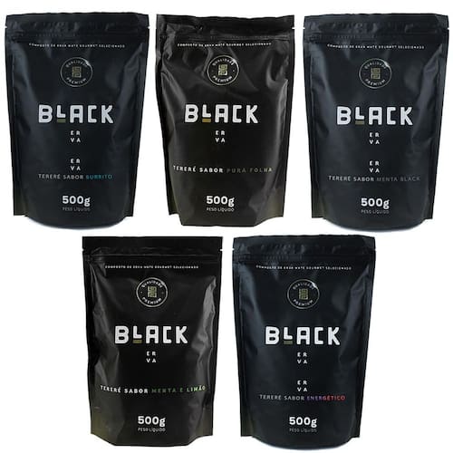 - 1x erva mate tereré black erva 500g sabor burrito - 1x erva mate tereré black erva 500g sabor pura folha - 1x erva mate tereré black erva 500g sabor menta black - 1x erva mate tereré black erva 500g sabor menta e limão - 1x erva mate tereré black erva 500g sabor energético