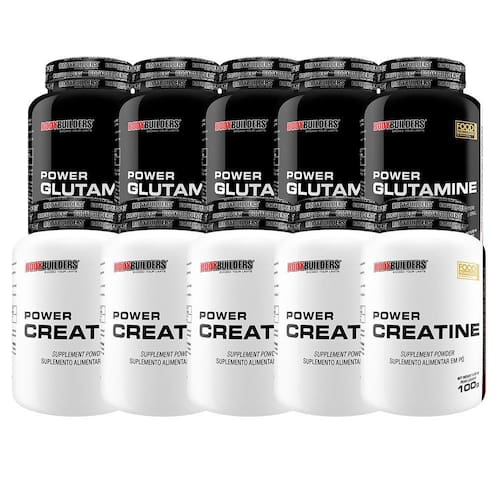 KIT 5x Power Glutamine 100g + 5x Power Creatine 100g - BodyBuilders A Power Glutamine é composto por um produto ainda mais concentrado, oferecendo um ótimo custo benefício. A Glutamina é indispensável na dieta de quem pratica treinos longos, intensos e regulares e sua suplementação é responsável pela construção de proteínas no corpo humano. Desta forma, a Glutamina ajuda a melhorar o seu desempenho e performance durante os exercícios do dia a dia, além de auxiliar na recuperação e manutenção dos músculos. A Power Creatine é composto por um produto ainda mais concentrado, oferecendo um ótimo custo benefício. A Creatina é responsável pela produção de energia em células musculares, fornecendo muito mais disposição durante os treinos. A Creatina também ajuda a suprir as necessidades nutricionais do corpo humano, contribuindo com o ganho de massa magra e auxiliando na recuperação dos músculos.