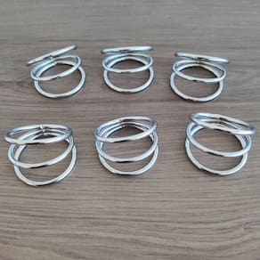 Kit 6 Argolas Prendedor Anel Suporte Porta Guardanapo de Pano Mesa #Fabricado em aço cromado #Argola para guardanapo #Fácil de usar Garantia: 3 meses / Peso: 282g / Cor: Cromado / Ref: 31151X6 Dimensões de cada: 6cm (D) x 5cm (A) Cuidados: Não lavar com materiais abrasivos Comporta: 1 Guardanapo de Pano. Conteúdo: 6 argolas. Material: - Aço cromado: Consiste de uma camada extra de protetivo aplicada sobre as peças cromadas, resultando em uma resistência maior contra a corrosão. A sofisticação de um evento depende de cada detalhe e guardanapos bem organizados podem ser a chave para uma decoração maravilhosa. A argola é fabricada em aço cromado, possui aspecto brilhante é altamente durável e resistente à ferrugem. É perfeito para decorar a sua festa. O conjunto é composto por 6 argolas.