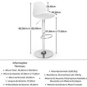 > Material da Estrutura da Banqueta: Metal Cromado